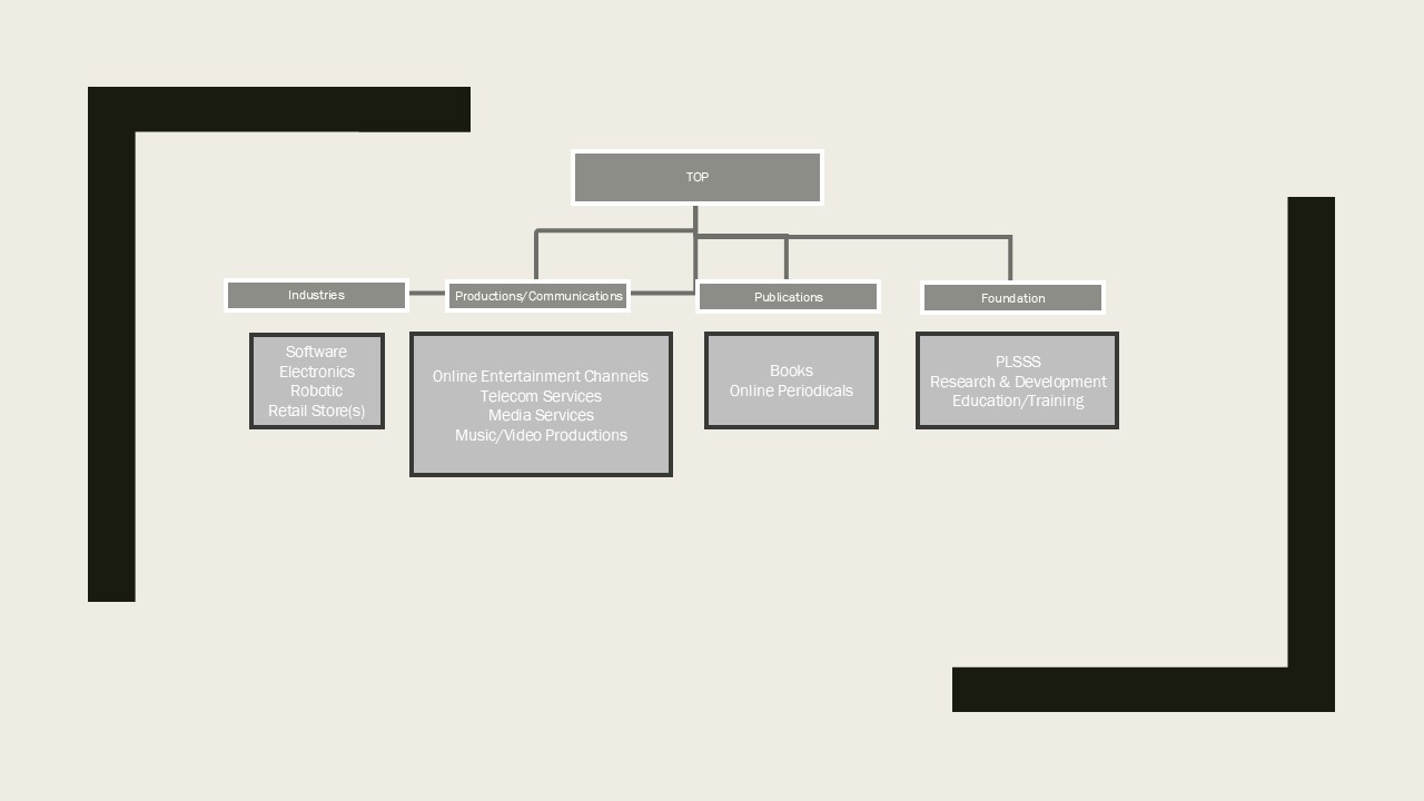 Starting with selling t-shirts, mugs, and other novelty items with the PLSSS logo. We have the initial funds to quickly and easily get this started. Other interruptions have delayed our plans for starting this year and the holiday season the way we had hoped, but things will be fully started by the beginning of 2026. This will fund our other business ideas starting with a software these will be cost effective feature rich software. A retail store that will sell many items to include merchandise, inventions, and other products. Click here to see our organizational chart.